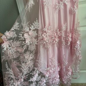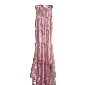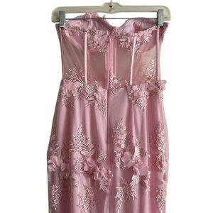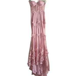 This elegant pink lace strapless dress is perfect for any special occasion. The intricate lace detailing adds a touch of sophistication and charm. Ideal for making a statement, this dress is a must-have in your wardrobe.