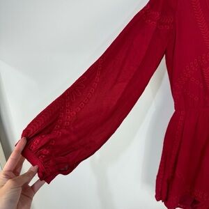 Lulu's Red Deep v Plunge Embroidered Long Sleeve Romper Jumper Boho Bohemian