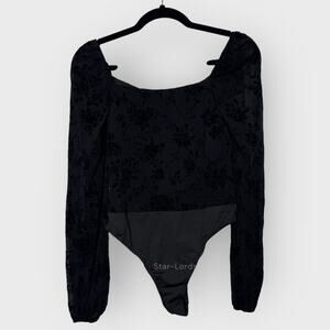 Lulus Regal Rendezvous Floral Bodysuit | Medium Black Mesh Long Sleeve Velvet
