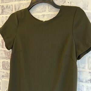 Lulu’s Women’s Shift Dress Olive Green Back Zip Short Sleeve Oversized XS, see measurements below