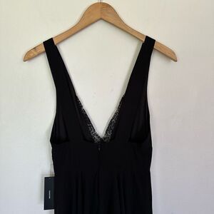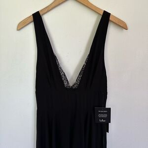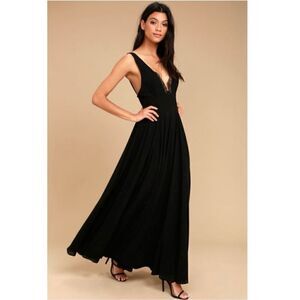 Lulus Women’s V Neck Lace Trim Black True Bliss Black Maxi Dress
