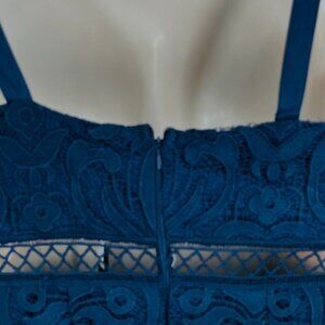 Lulus Won Your Heart Embroidered Lace Dress Size S in Navy High Low Hem New Tags