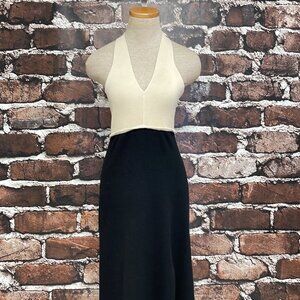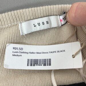 Lush NWT Maxi Dress Halter Knit Sweater Taupe Black Size Medium M