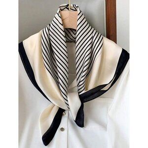 ⭐Luxury Elegant Bandana Silky Square Scarf WHITE BLANK Striped Versatile Soft