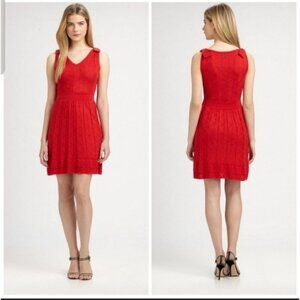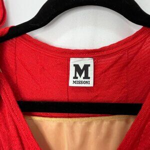 M by Missoni Red Zig Zag Bow Shoulder Knit Dress Fully Lined Size Small