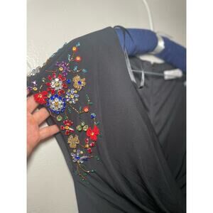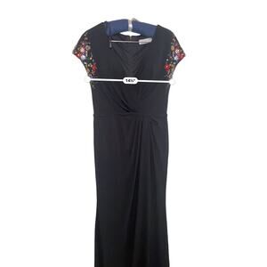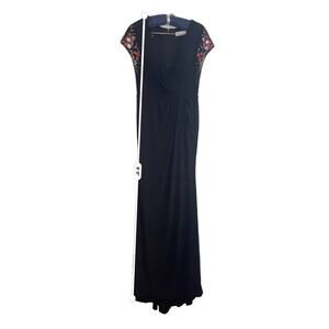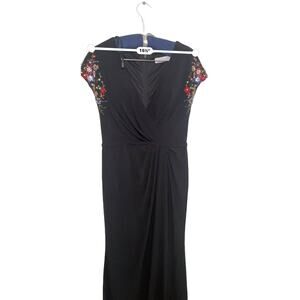 MAC DUGGAL EMBELLISHED SLEEVE JERSEY WRAP GOWN size 6