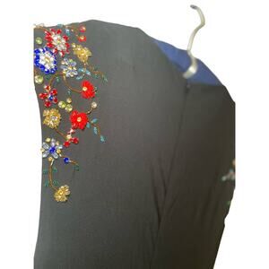 MAC DUGGAL EMBELLISHED SLEEVE JERSEY WRAP GOWN size 6 (S)