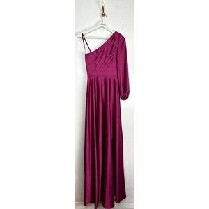 MAC DUGGAL One-Shoulder Long Sleeve Satin High/Low Gown in Berry Size US 0