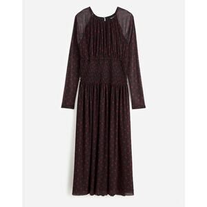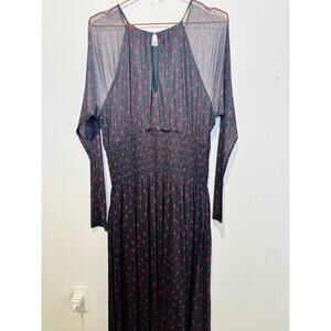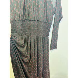 MADEWELL Black Red Smocked Midi Floral Print Sheer Lined Dress size XXL