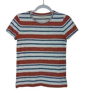 MADEWELL LADIES BLUE/ORANGE STRIPED SHORT SLEEVE TOP- XS