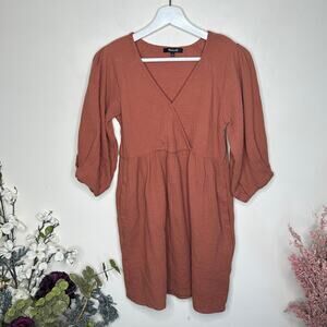 MADEWELL Marianna Puff-Sleeve Mini Dress Clay Brown {J37}