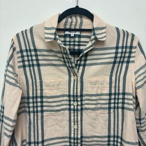 Awesome Madewell Oversized Ex Boyfriend Swing Shirt in Windowpane. Button up flannel. Butter Soft. Shirttail hem. Big patch pockets.