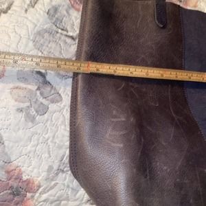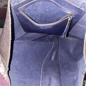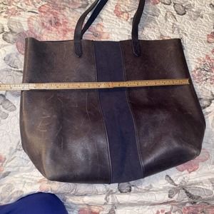 MADEWELL Suede Stripe Transport Tote Midnight Blue Leather Large Shoulder Bag.