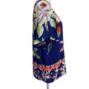 MAEVE Anthropologie Gardenia 100% Silk Blue Floral Flutter Sleeve Blouse Sz 2