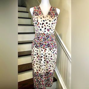 MAGGY LONDON Calf Length Sleeveless Floral Dress w Back Vent