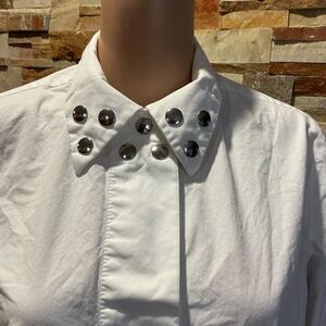 MAISON MARGIElA White Button Down Shirt Dress with Silver Snaps