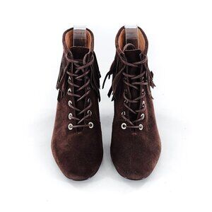 MAJE Fox Suede Ankle Fringe Bootie Brown NEW Floor Model