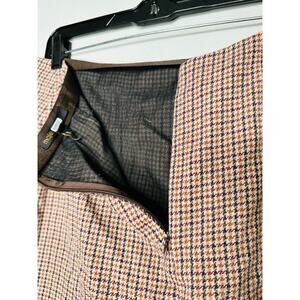 MAJE Jaisa Brown Plaid Wool Blend Front and Back Slit Pencil Skirt in size US 8 is a chic and edgy piece that elevates any wardrobe. Crafted from a luxurious wool blend, this skirt features a classic brown plaid pattern with a contemporary twist. The pencil silhouette hugs the figure for a flattering fit, while the front and back slits add a bold, modern edge and ease of movement. Perfect for both professional and social settings, pair it with a tailored blouse and heels for a polished look or a chunky sweater and boots for a trendy, casual outfit.