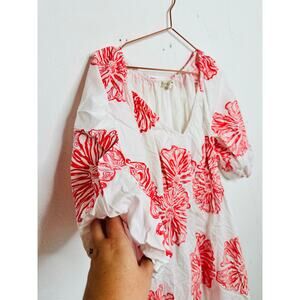 The MARIE OLIVER Ava Maxi Dress in size M is a breezy and feminine piece crafted from 100% cotton for all-day comfort. Featuring a soft pink floral print, it’s designed with a flattering V-neckline and relaxed 3/4 sleeves that add an effortlessly chic touch. The flowy silhouette and maxi length offer graceful movement, perfect for warm-weather outings, vacations, or casual gatherings. Light and breathable, this dress balances comfort with romantic charm. A timeless wardrobe addition with easy elegance and playful floral appeal.
