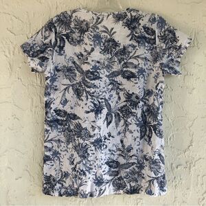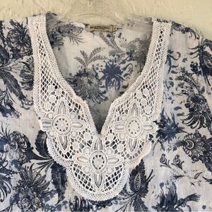 MARINA GIGLI Linen Floral Embroidered Short Sleeve Top Size Small Italy Boxy