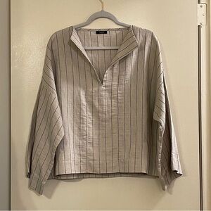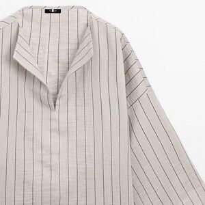 MASSIMO DUTTI NWOT Contrast Striped Linen Blend Shirt