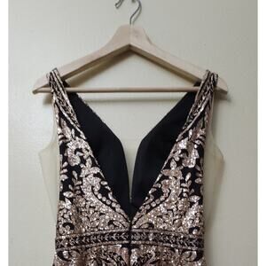 The dress is made of 100% polyester and sequin fabric, with beaded, zipper, and sequin accents that add a touch of sophistication. The dress is a junior size 10 and is handmade, ensuring that each dress is unique. The dress is perfect for those looking for a modern, sexy, and elegant look for prom, parties, or weddings.