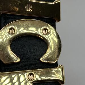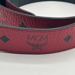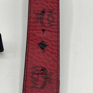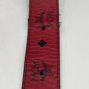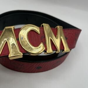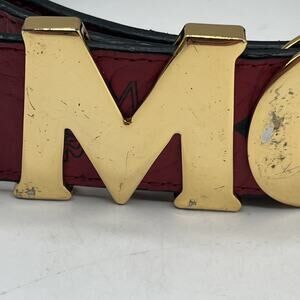 MCM Claus Red Visetos 24k Rolled Gold Buckle Belt Logo On Leather AS IS DAMAGED. Belt is worn has severe signs of wear on buckle like discoloration and scratches. Please review photos well before making decision of purchase to ensure that fits all criteria you are looking for.