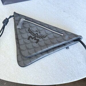 MCM GRAY Canvas and leather Triangle Shoulder Bag