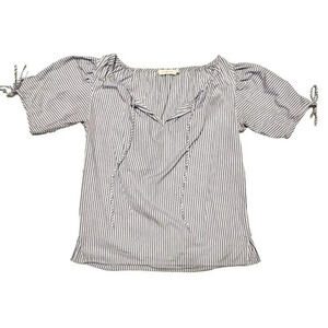 MED Tory Burch Ariana Short Puff Sleeve Blouse with Ties Blue Ombre Stripes