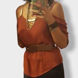 MERAKI Cold Shoulder Blouse Chiffon 3/4 Sleeve Cinnamon Color Size Small