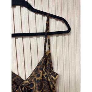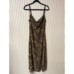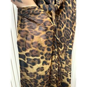 MICAS Leopard Print Sheer Draped Maxi Dress Brown Women’s Size M