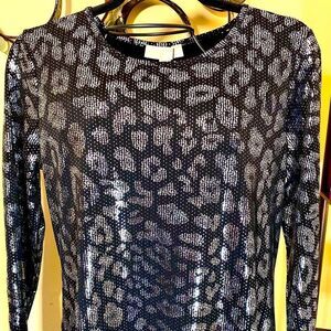 Absolutely gorgeous MICHAEL KORS BLACK & SILVER METALLIC LEOPARD PRINT SHIFT DRESS