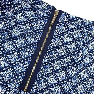 MICHAEL KORS Fluted High Rise Exposed Zip Mini Skirt Navy Blue Floral Womens 4