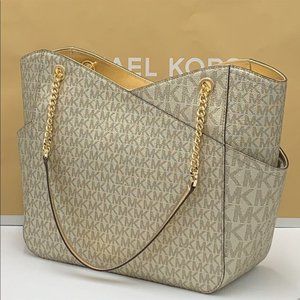 MICHAEL KORS LARGE X CHAIN SHOULDER TOTE BAG PALE GOLD COLOR
