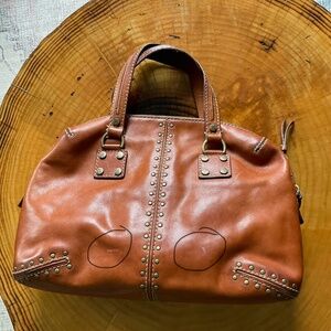 Vintage, leather, stud, studded, neutral, versatile, roomy