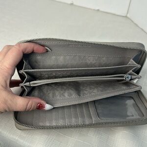 Interior features 1 zip pocket, 3 accordion-style pockets and 10 card slots; interior color matches exterior