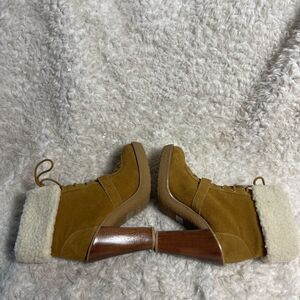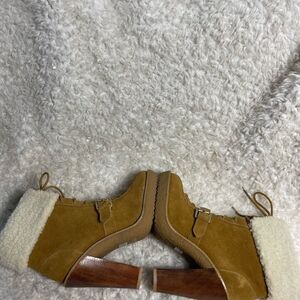 MICHAEL Michael Kors Chestnut leather Suede Sherpa Cuff Laceup Heel Boots SZ9M Gently used see all pictures any questions please message.E11