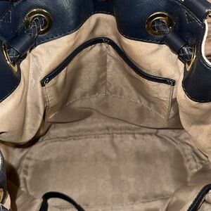 MICHAEL Michael Kors Jet Set Navy Blue/White Signature Gathered Tote!