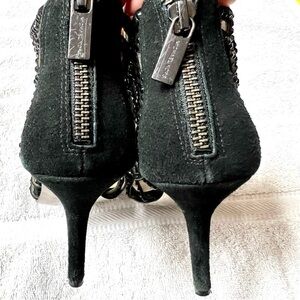 MICHAEL Michael Kors Yvonne Caged Open Toe Dress Sandals, Black Suede.