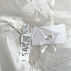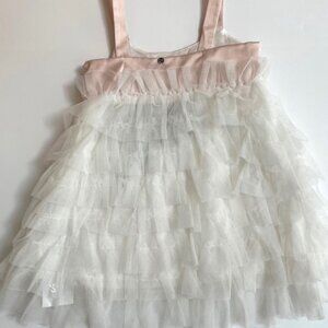 Brand new with tags special event dress. Embroidered with rhinestones and pearls. Adjustable shoulder straps. Fully lined. Ruffled skirt. Side zip closure. Armpit to armpit 10.5". Length 22" from shoulder.