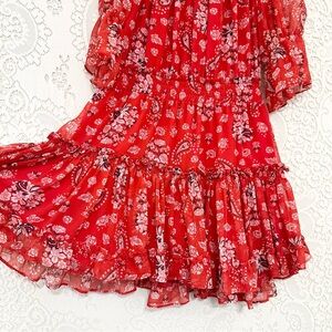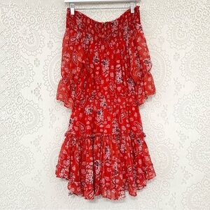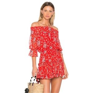 MISA Los Angeles Darla Off the Shoulder Dress Red Paisley
