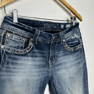 MISS ME STANDARD EASY CROP Low Rise Slim Fit Jeans rhinestone studded womens 27