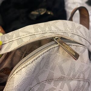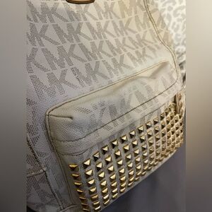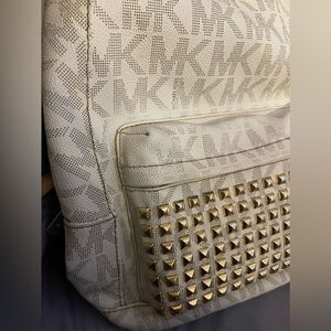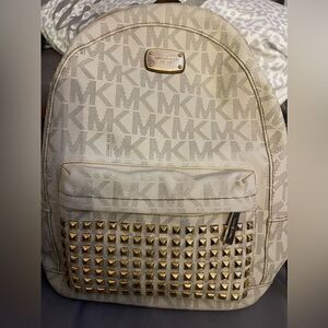 MK michael kors RHEA studded fullsize backpack cream,white tan leather gold guc
