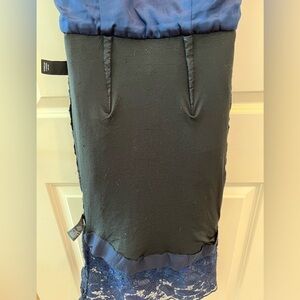 Navy floral lace makes this sleek sheath by ML Monique Lhuillier