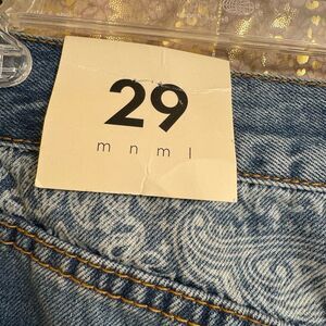 MNML Men's Paisley Pocket Blue Denim Distressed Straight Leg Jeans Size 29 NWT
