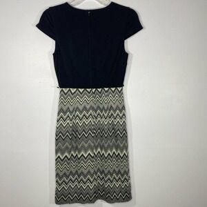 MODCLOTH Black & Gray Chevron Print V Neck Belted Dress Size Extra Small