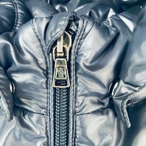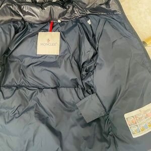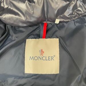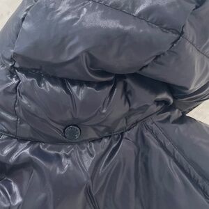 MONCLER {3} Coat Navy Blue Girls' Puffer Zip-Up Detachable Hood