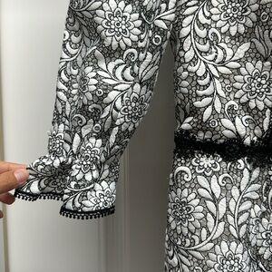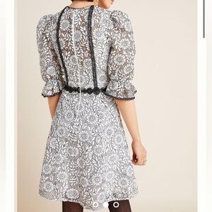 MONIQUE LHUILLIER Short Sleeve Embroidered Lace Mini Dress