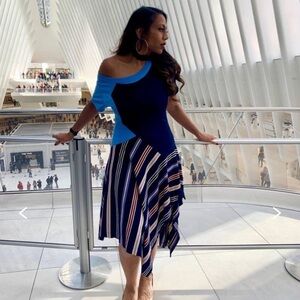 Blue print jersey (95% Viscose). Hourglass. Short sleeves. High neckline with cutout detail