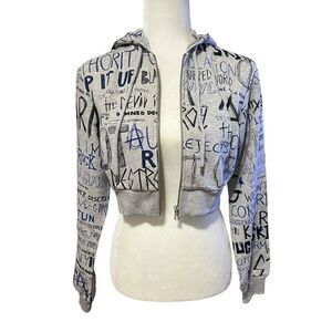 MOSCHINO COUTURE Gray Crop Zip Hoodie New w Tags Sz Small Sweatshirt Jacket 6